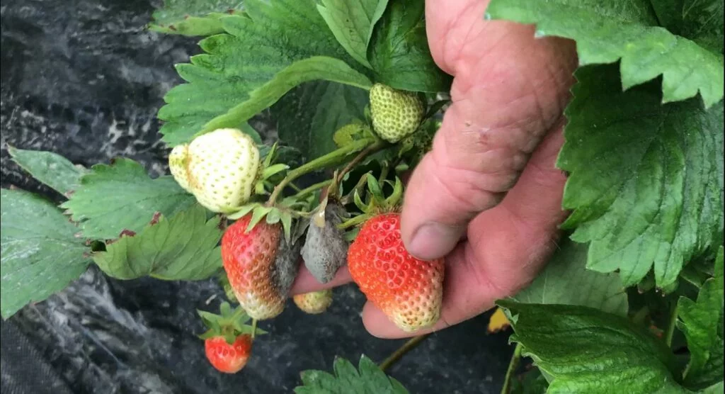 - truskawki i maliny – owoce stają się miękkie i pokrywają nalotem, szczególnie w okresie owocowania,