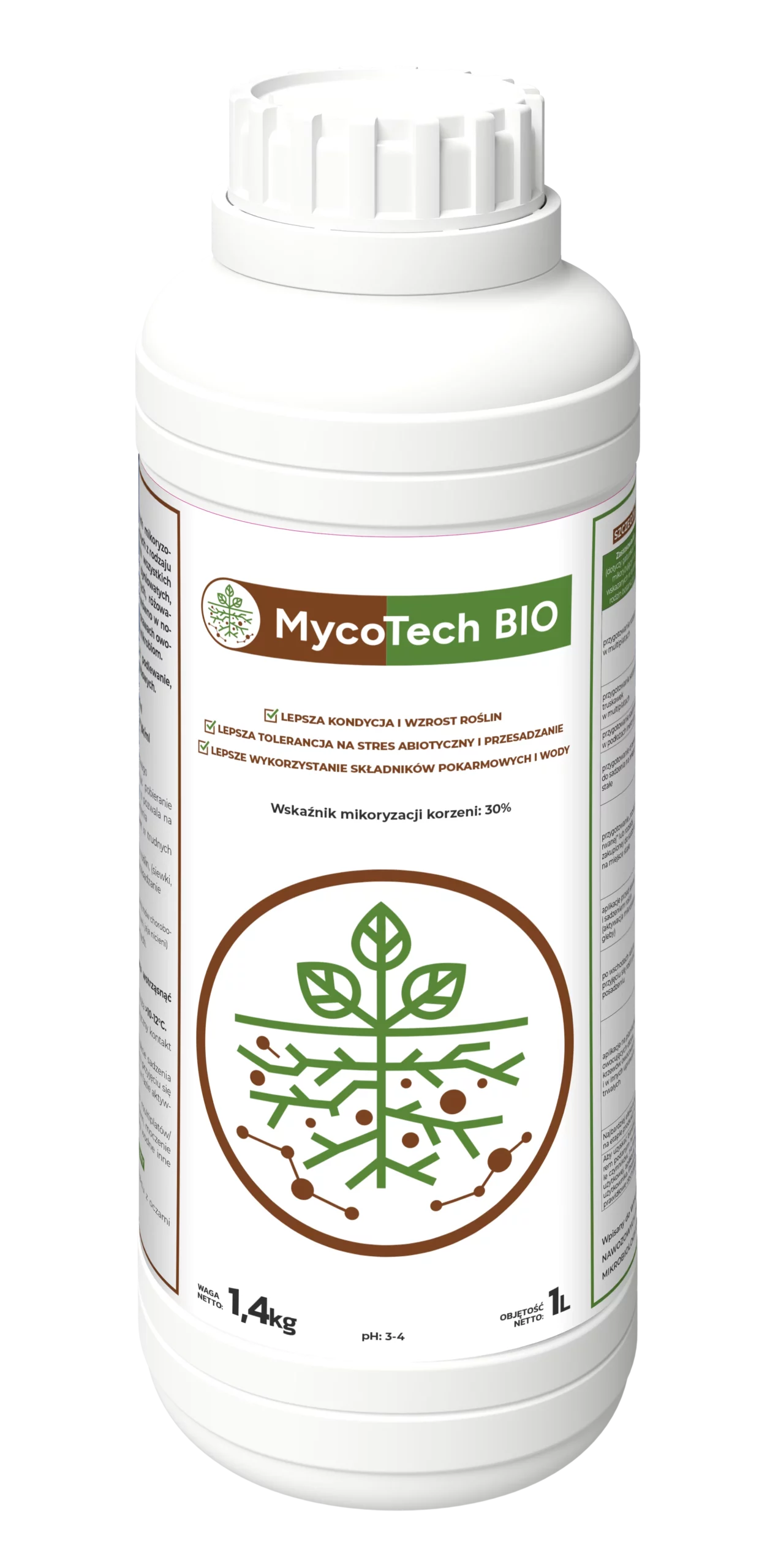 MycoTech Bio to inokulum grzybów mikoryzowych i konsorcjum bakterii ryzosferowych tworzących symbiozę z korzeniami wielu gatunków warzyw (z wyjątkiem kapustnych). Mikoryza działa jak przedłużenie systemu korzeniowego – setki metrów strzępek grzybni zwiększają powierzchnię chłonną systemu korzeniowego roślin nawet kilkakrotnie. Preparat może być stosowany podczas podlewania rozsady lub nawilżania podłoża przed siewem, dzięki czemu mikoryza zasiedla rośliny już od pierwszych dni wzrostu.