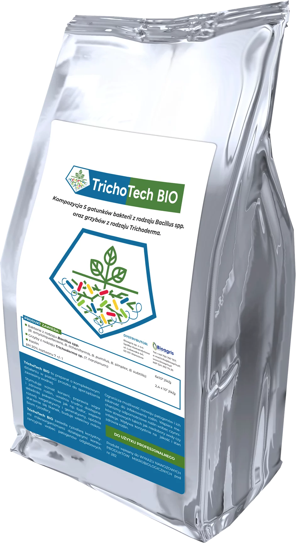 TrichoTech Bio to preparat zawierający grzyby z rodzaju Trichoderma i bakterie z rodzaju Bacillus – jedne z najlepiej przebadanych mikroorganizmów w produkcji roślinnej. Produkt stosowany w fazie rozsady szybko kolonizuje strefę korzeniową, chroniąc młode rośliny przed patogenami, poprawiając pobieranie składników pokarmowych oraz stymulując rozwój korzeni. Co istotne, mikroorganizmy te przemieszczają się wraz z rozsadą do gleby, tworząc naturalną barierę biologiczną od pierwszych dni uprawy właściwej. Produkt ten jest głównie polecany przy przygotowywaniu rozsad warzyw kapustowatych.